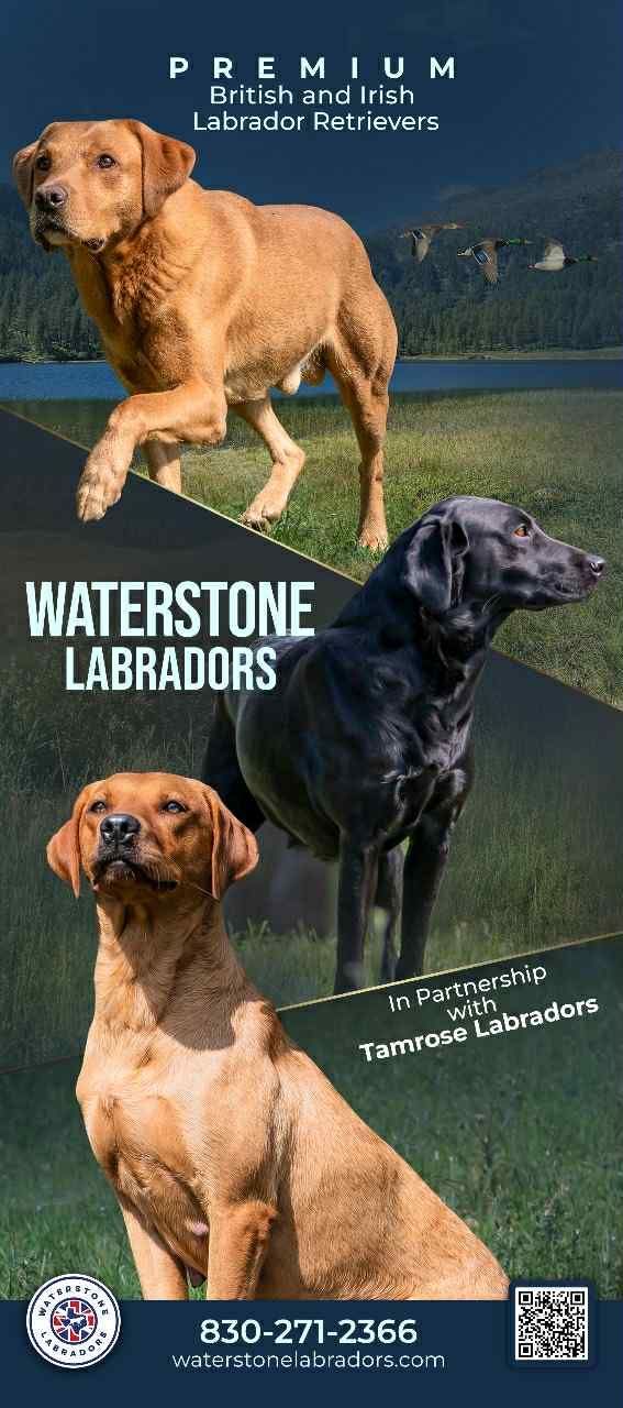 Waterstone Labradors specializes in breeding and training Labrador Retrievers imported from the UK and Ireland. We produce black, yellow and Fox Red Labrador Retrievers without emphasis on color. We are a non-dilute facility. We prioritize proper socialization for breeding stock for puppies while utilizing traditional training techniques with no ecollar like they do in the UK and Ireland .